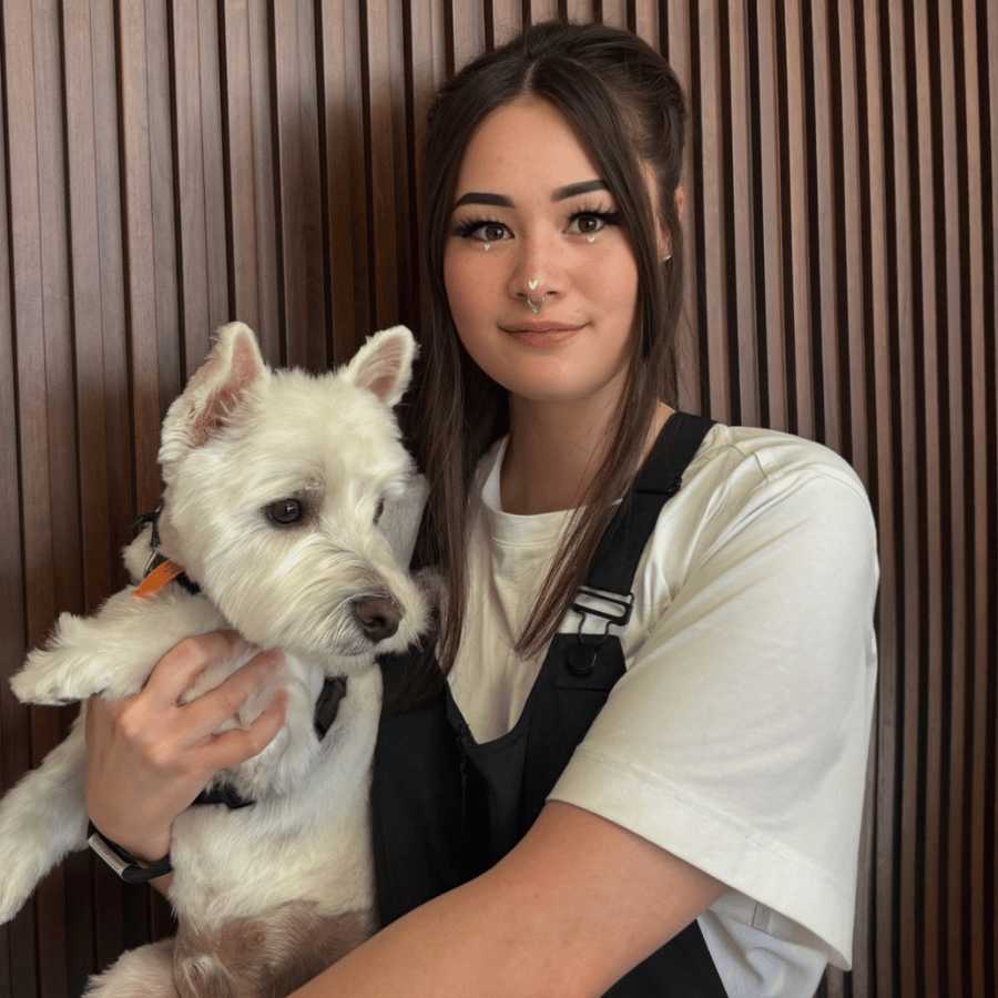 Beyond her skills behind the grooming table, Jade brings warmth, creativity, and a commitment to ongoing professional development. She is dedicated to staying up to date with grooming techniques, tools, and trends, and is always excited to learn new styles that help pets look and feel their best.
